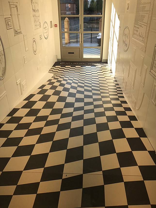 Dipasang di pintu masuk ke satu ruang pameran perusahaan di Manchester, ilusi mampu membuat siapapun yang masuk berhenti sejenak.