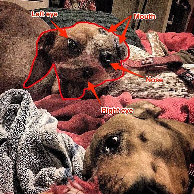 Terlihat bentuk anjing yang berada di belakang terlihat aneh.