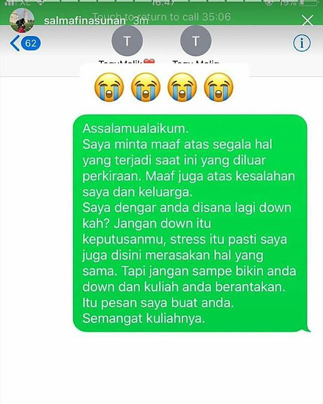 Alma mengunggah screenshot pesan yang diduga dikirimkan pada Taqy.