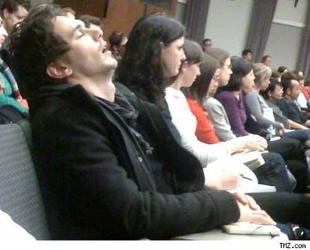 James Franco rupanya benar-benar lelah saat menghadiri kelas. Ia terlihat tertidur pulas hingga membuka mulutnya.