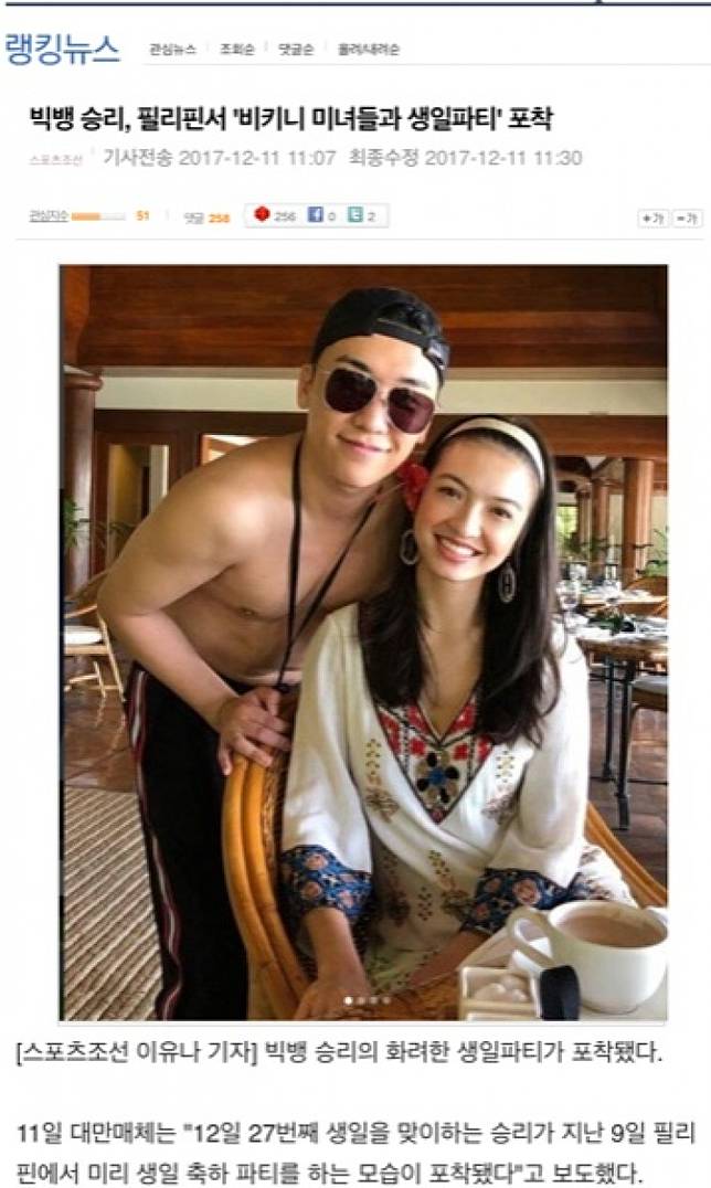 Sambil mengunggah foto Raline Shah dan Seungri, situs Nate membahas tentang penampilan personel Bigbang ini. "Penampilan bagian atas tubuh Seungri sama seperti apa yang terlihat di pesta ulang tahunnya kemarin," berikut tulisan yang tertera pada artikel Nate.