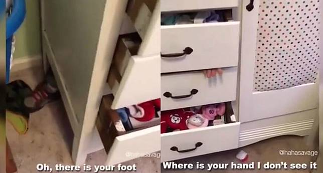 Si anak terjebak di lemari pakaian miliknya sendiri. Ayahnya gak tau kenapa anaknya bisa masuk dalam lemari yang kecil dan sempit tersebut.