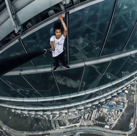 Pria ini adalah Wu Yongning, dan dirinya adalah seorang rooftopper. Ini adalah sebutan bagi orang-orang yang dengan nekatnya memanjat bagian tertinggi gedung dan selfie disana, tak peduli seberapa tinggi gedung tersebut.