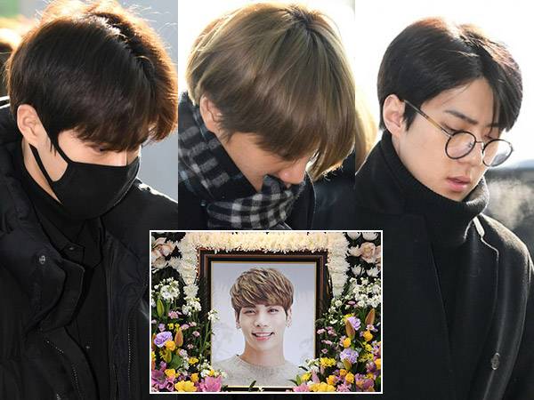 Tampak mata dari masing-masing member masih terlihat sembab, terutama Suho yang kabarnya menangis deras usai menyelesaikan drama musikalnya. Meski begitu, satu per satu dari mereka sudah bergantian memberikan penghormatan terakhirnya kepada Jonghyun SHINee di Rumah Duka Seoul Asan Medical Center, sejak Selasa sampai Rabu kemarin.