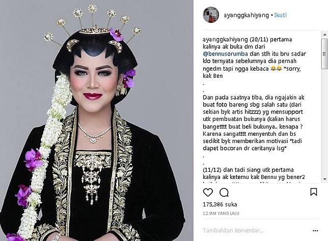 Bennu pun menuliskan caption pada unggahan foto Kahiyang di laman Instagramnya, "kecantikan hati seseorang dilihat dari kerendahan hatinya @ayanggkahiyang thank u so much for having me. Masih speecless km terlalu baik hatinya dan humble."